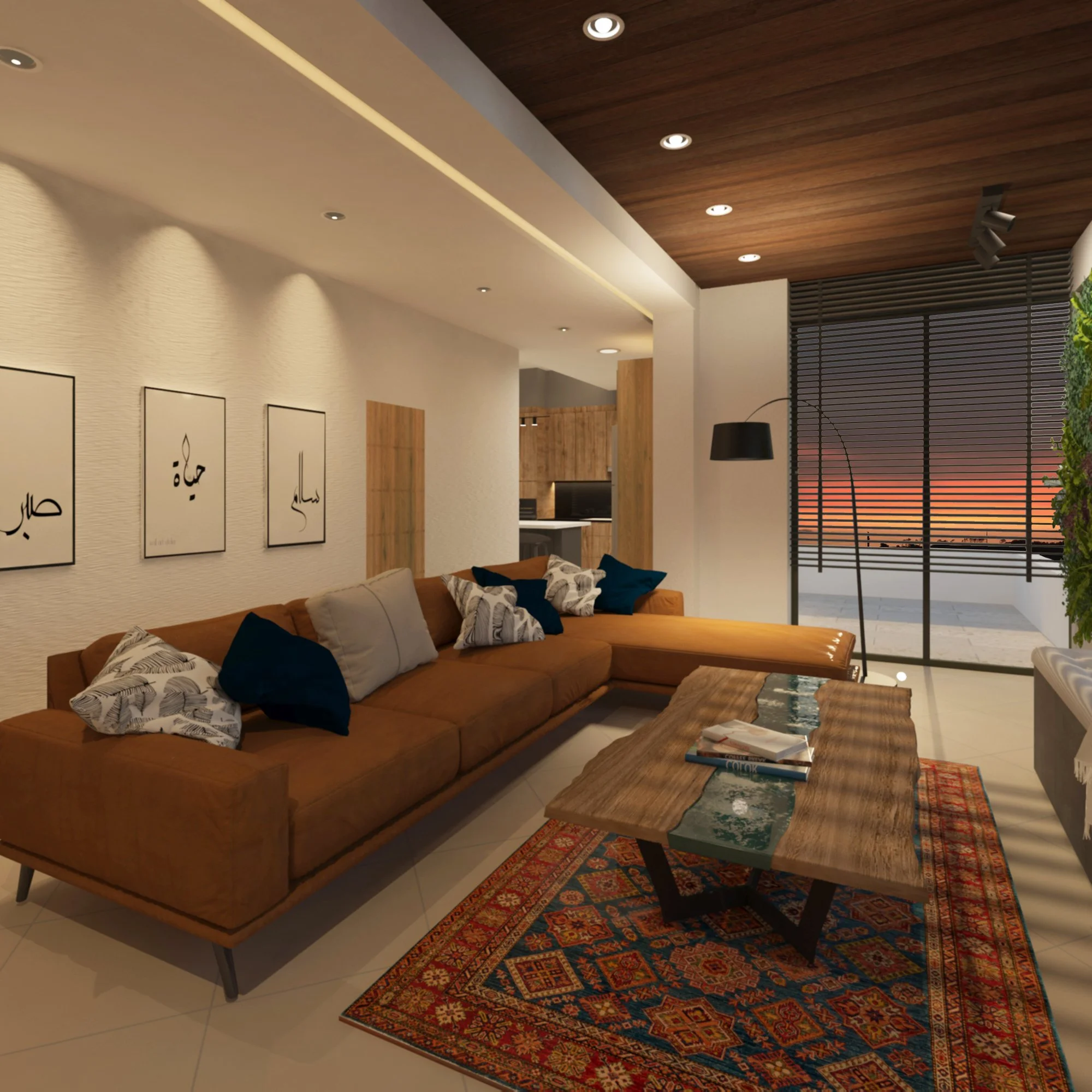 This 120 m2 apartment was just a plain white canvas before designing this cozy atmosphere by melding a harmonious variety of design elements. The client wanted a warm modern-looking setting that yet fosters a connection with the Palestinian heritage.